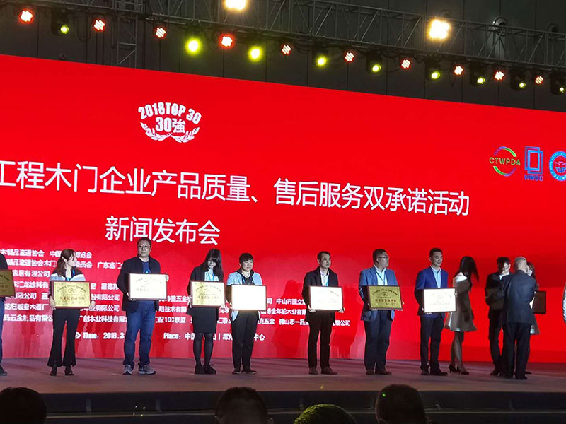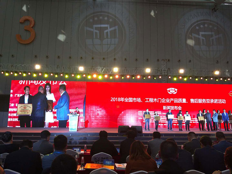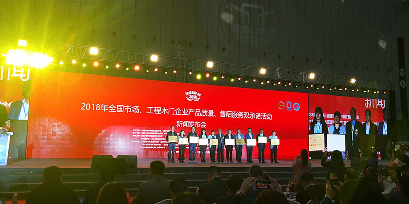 2018中國門窗品牌創新趨勢高峰論壇暨新聞發布會樹興木業有限公司榮獲2018全國市場工程木門企業產品質量售后服務雙承諾活動30強榮譽